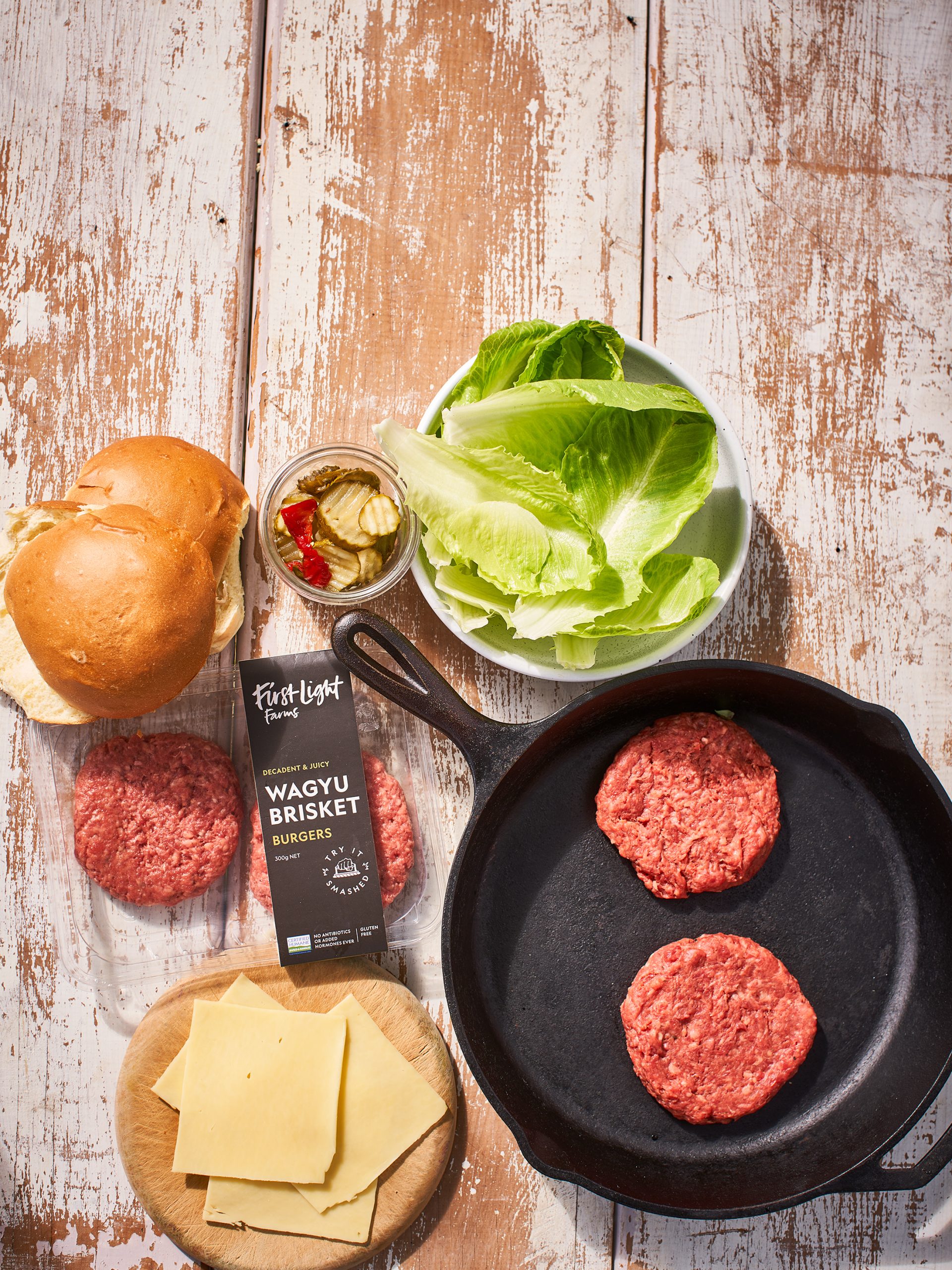 Get your hands on 6 × 300g packs of Wagyu Brisket Burgers.