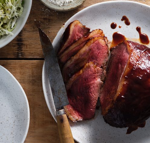 Just before serving, pop it under a screaming hot grill for 2 minutes until the fat cap is golden brown. Slice it thinly and serve with whatever takes your fancy - we often go with rosemary roast potatoes, some greens and our favourite chimichurri sauce