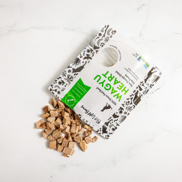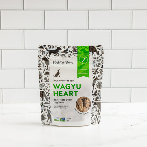 Produced from 100% grass-fed Wagyu beef hearts, First Light Farms beef heart treats for dogs not only taste delicious, but they’re incredibly nutritious. The perfect reward for your best friend!