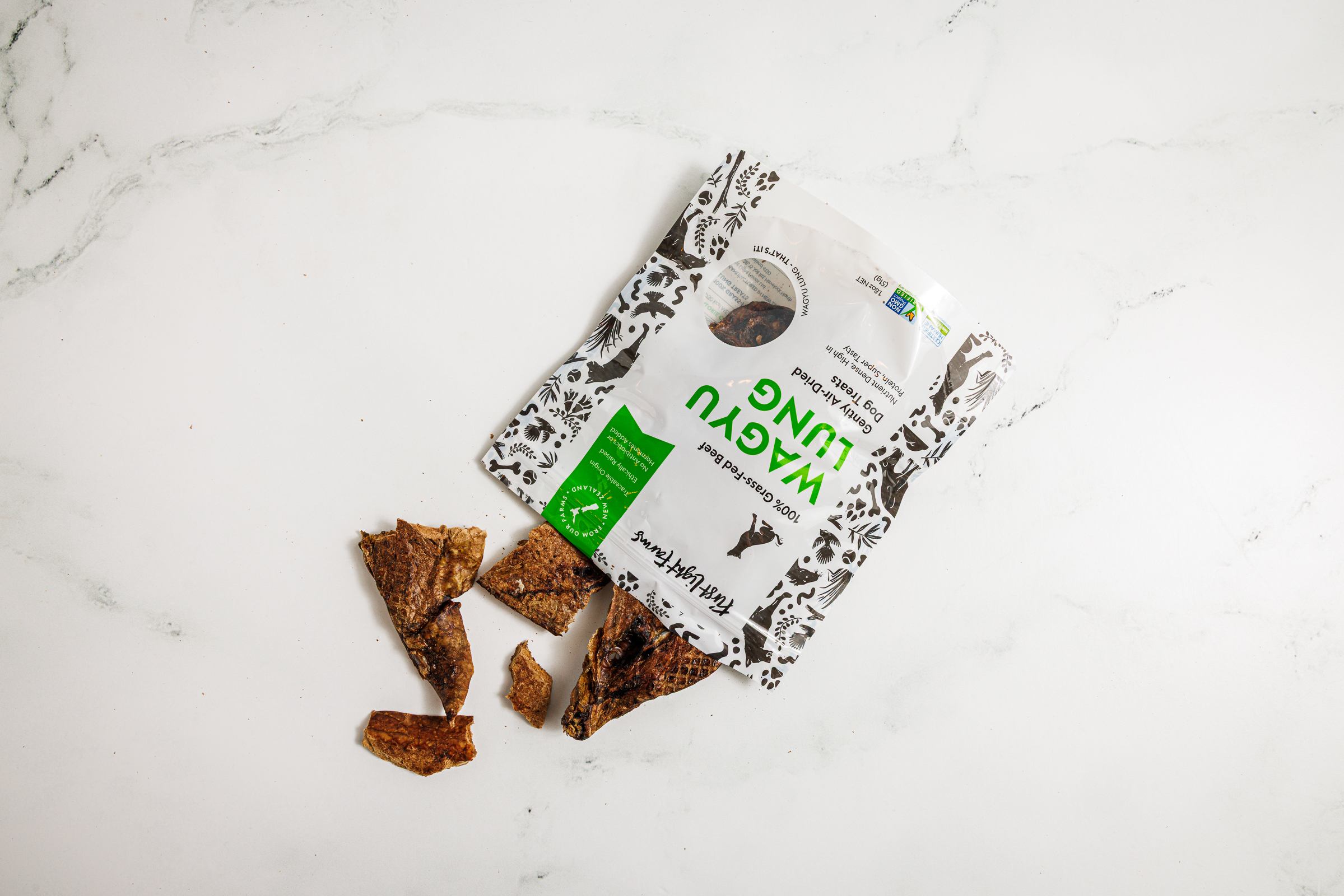 Full ingredient list: 100% freeze-dried Wagyu beef lung from First Light Farms.
